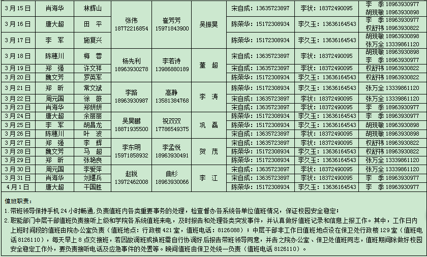 根据市委办公室市政府办公室《关于加强全国“两会”期间值班工作》(【2018】24号)精神,制订了《欧亿官方网页版_欧亿(中国)在全国“两会”期间应急值班表》,现将应急值班表印发给你们,请严格抓好落实。