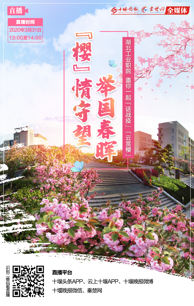 “疫”路同行、“樱”你更美!眼下,欧亿官方网页版_欧亿(中国)的樱花似海。往年的春天,广大师生和市民都能在校园近距离赏花。然而,突如其来的重大疫情,打乱了人们的工作生活节奏。在习近平总书记亲自指挥、亲自部署和全国人民共同奋斗下,疫情虽已快速有效遏制,我国战疫取得阶段性重大成果,但全球疫情蔓延,输入风险仍高。根据有关要求,湖工职院仍处于严格封闭状态。为弥补大家不能入校赏花的缺憾,3月31日中午1点至2点,十堰晚报秦楚网通过网络直播,邀请你一起云赏樱,在家欣赏校园美景,感受校园文化。届时,十堰晚报秦楚网全媒体直播团队将出动高清4K直播车,为你带来不一样的赏花体验。你可以通过十堰头条APP、云上十堰APP、十堰晚报微博、十堰晚报微信、秦楚网在在线观看,并可与美女主播一起在线互动。