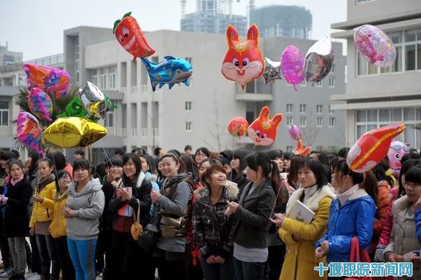 3月7日中午,全院女生齐聚3号教学楼前,参加学院第四届女生节活动启动仪式。