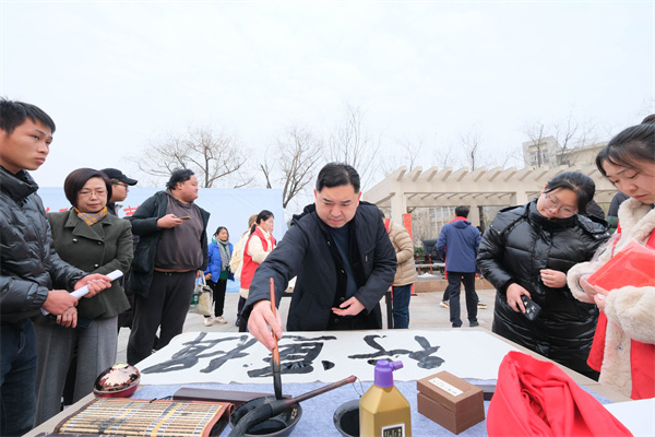 新闻网讯(文/图 记者 熊超 曾刚)12月28日下午,欧亿官方网页版_欧亿(中国)邀请十堰市著名书画家操建华、李发山、黄家喜、叶继成、赵虹、姚强、李永涛、刘亚军、杨永志在学校慧智广场现场挥毫泼墨,为师生展示书法、美术创作技法并义务创作,和我校学生书画协会的同学亲切交流研讨,并一同为师生书写春联,送上新春的祝福。校党委副书记、校长边疆,校党委委员、副校长、党委宣传部长胡昌龙参加活动。