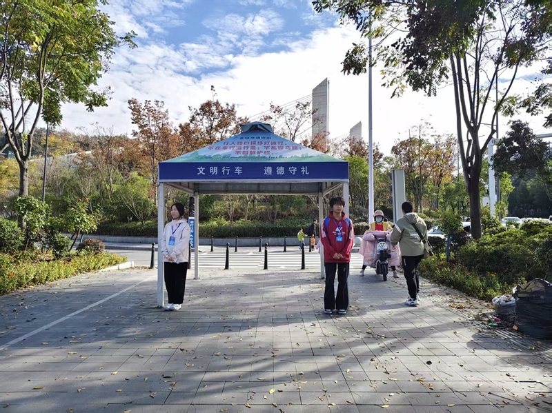 应十堰市体育局邀请,校团委、青年志愿者协会在校内广泛动员、层层筛选,最终选派80名政治素质高、服务意识强、综合素质突出的学生参与本次志愿服务。志愿者们于11月8日早晨便陆续抵达十堰体育中心,在接受岗前培训后,迅速投入到会场布置、现场观众引导、秩序维护、区域指引等各项工作中,始终以饱满的热情和严谨的态度坚守岗位,成为赛场外一道亮丽的风景线。